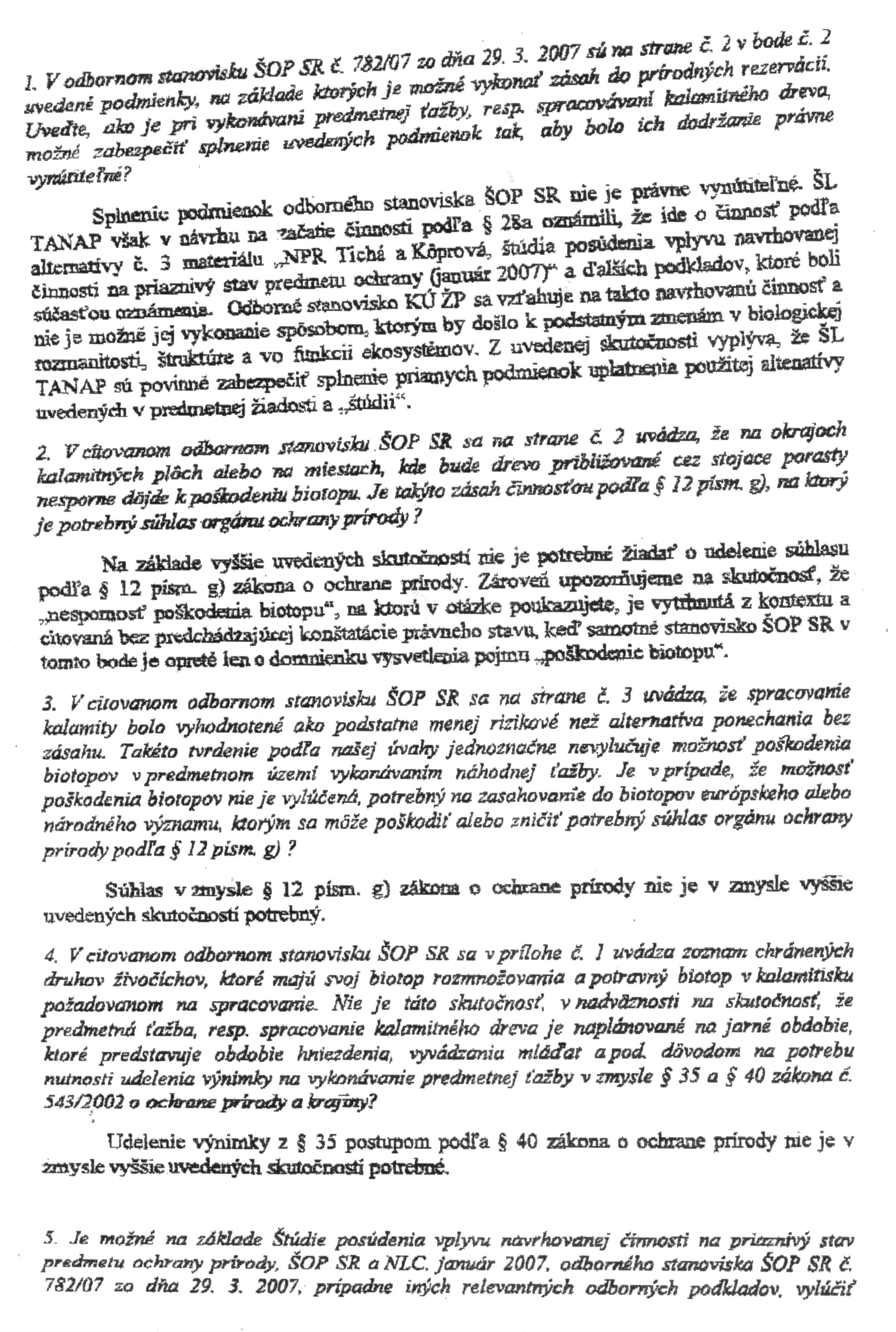 Odpoveď MŽP SR na otázky policajného zboru zo dňa 20. 4. 2007