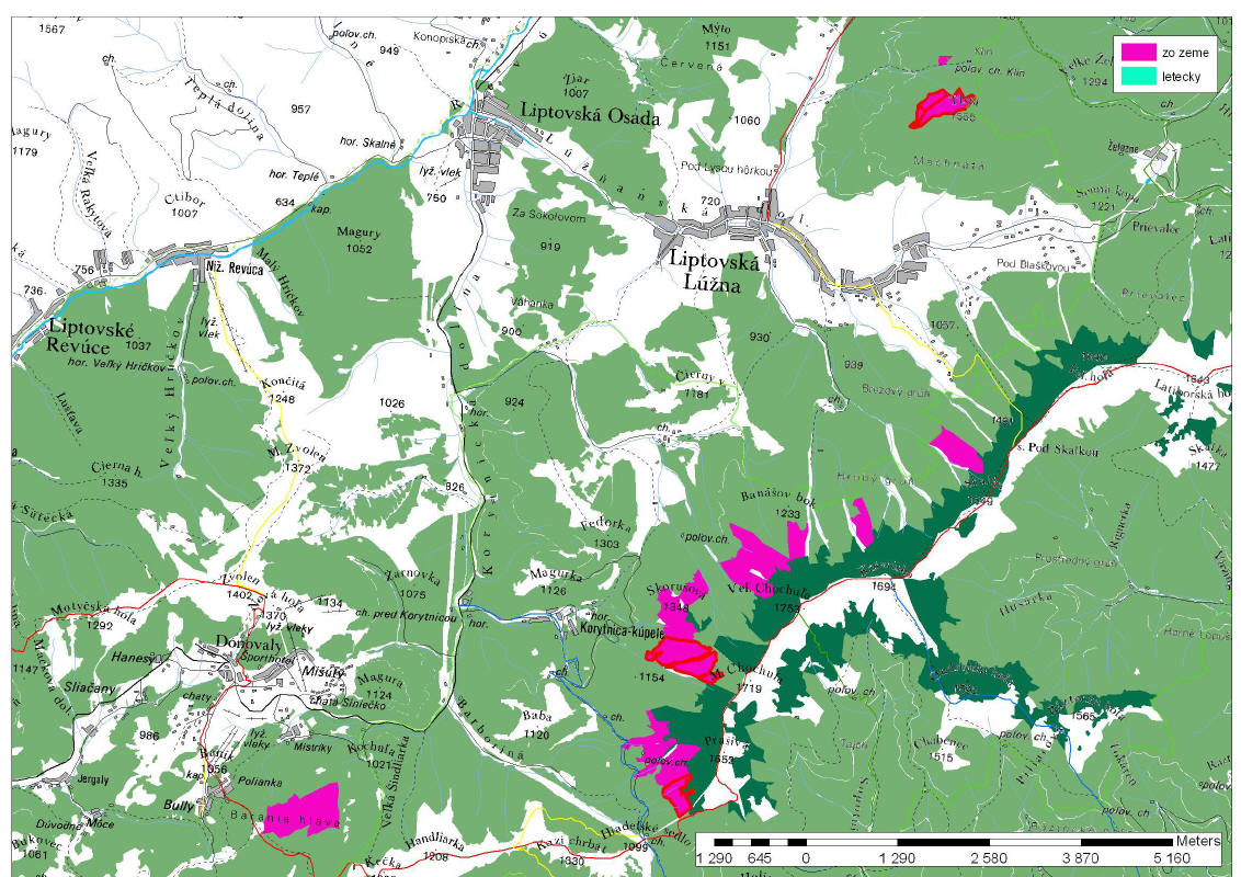 Mapa plánovaných postrekov v okolí Liptovskej Osady