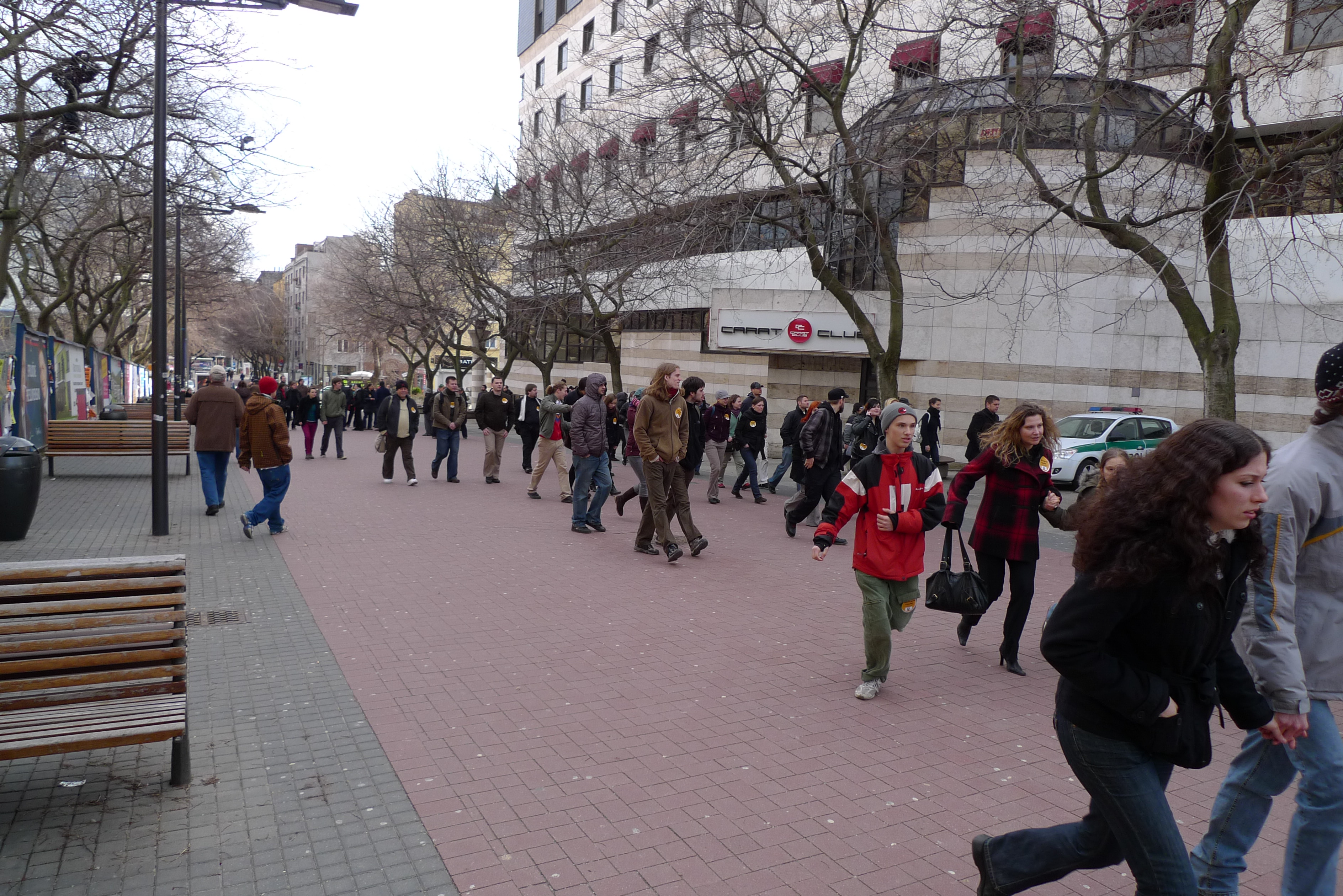 Účastníci blokády utekajú sledovať zásah polície proti neonacistom